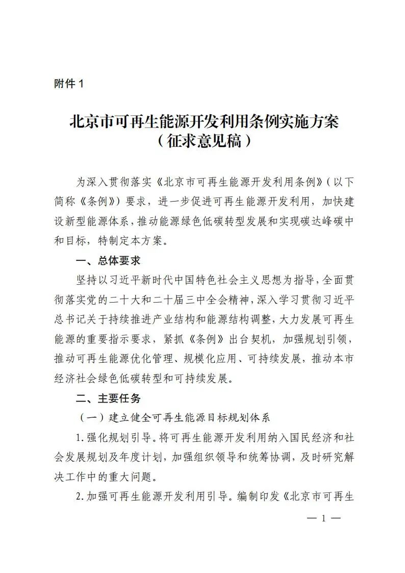 附件:1.《北京市可再生能源开发利用条例实施方案(征求意见稿)》