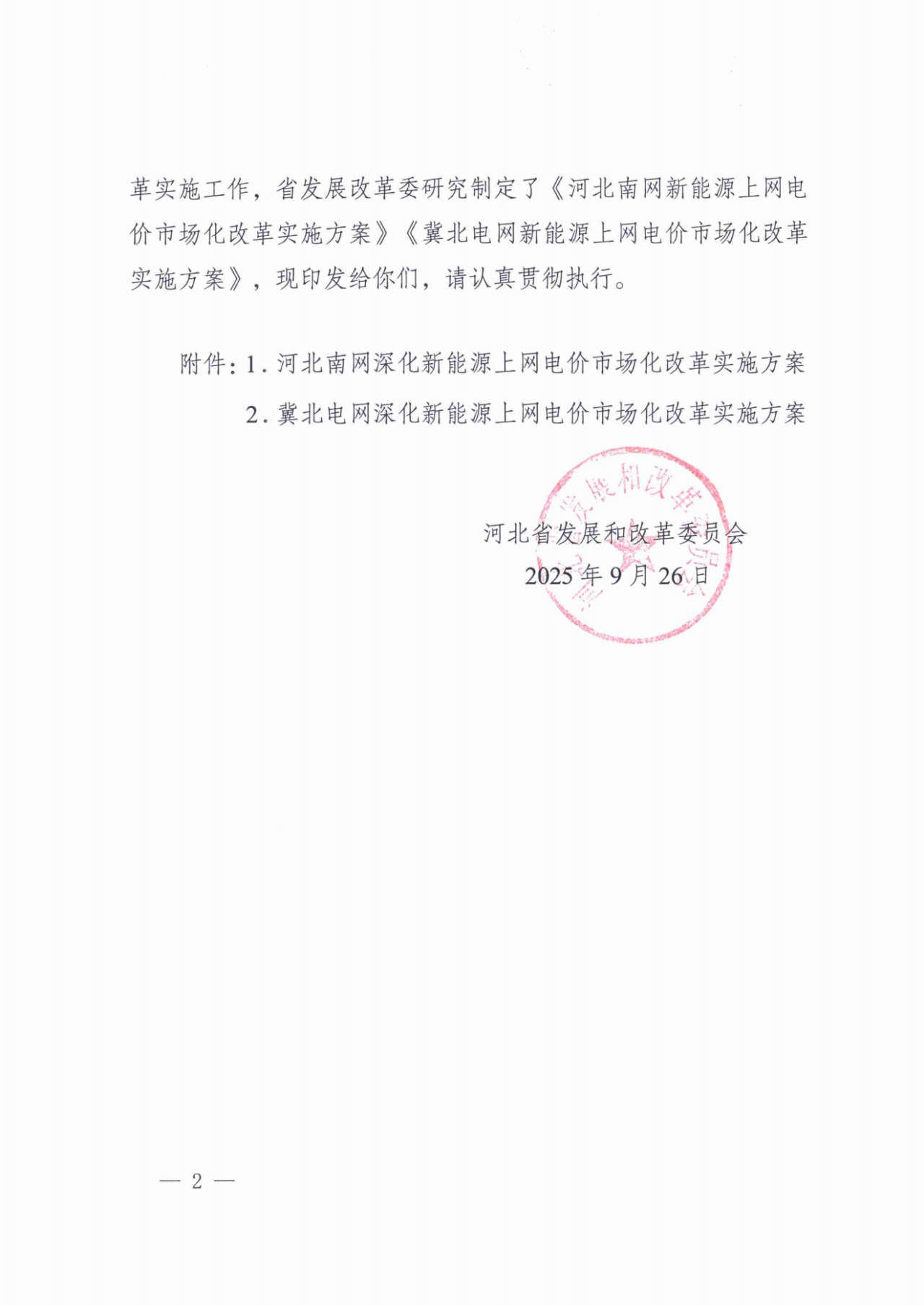9月26日,河北省发改委正式印发河北南网、冀北电网《深化新能源上网电价市场化改革实施方案》以及《增量新能源项目竞价工作方案》的通知。