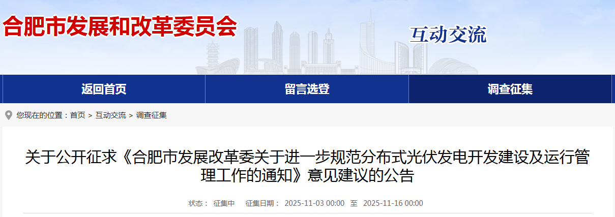 11月3日,安徽省合肥市发展和改革委员会发布关于公开征求《合肥市发展改革委关于进一步规范分布式光伏发电开发建设及运行管理工作的...