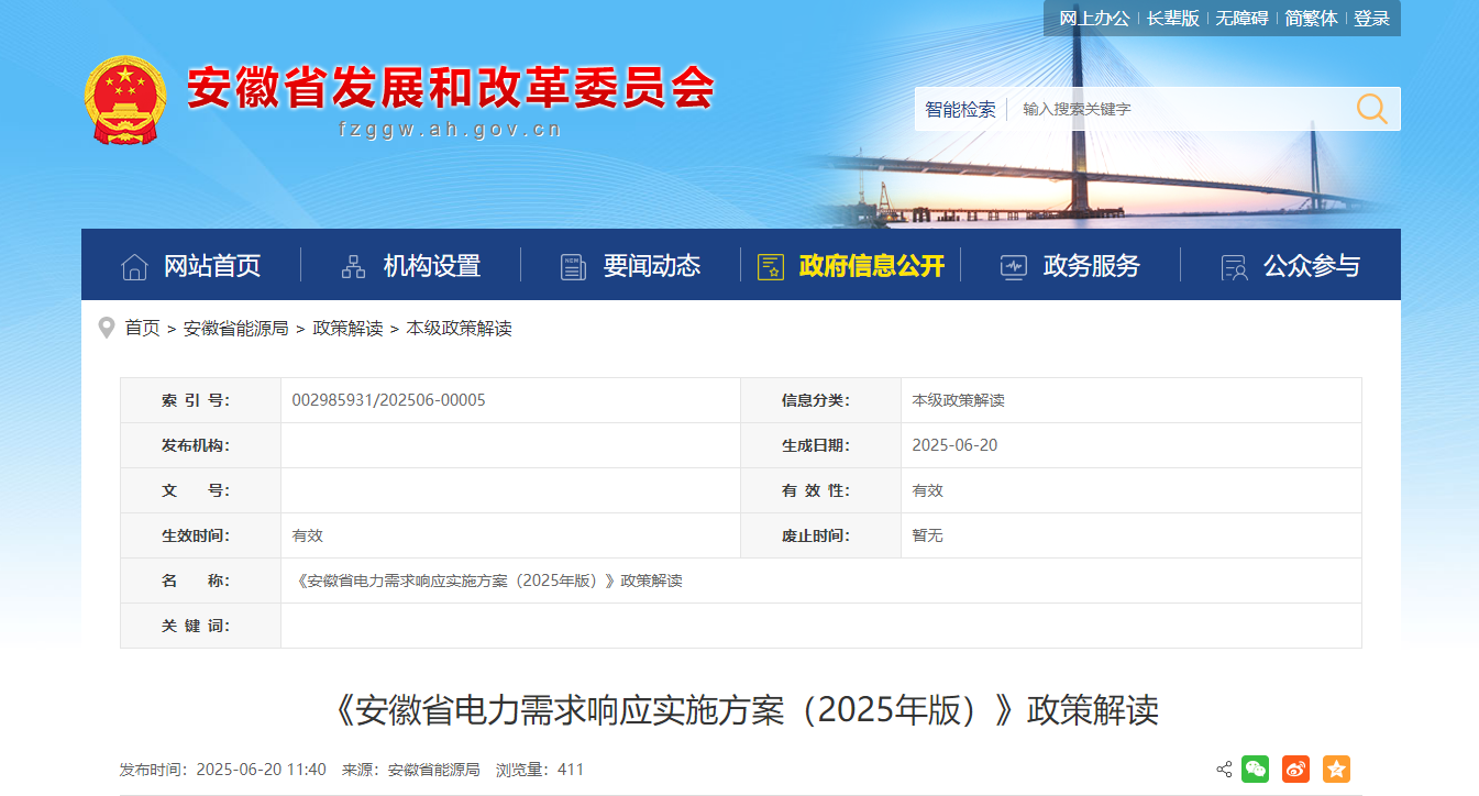 近日,安徽省发展改革委、省能源局印发了《安徽省电力需求响应实施方案(2025年版)》(以下简称《实施方案》),现解读如下。