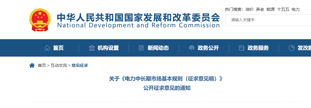 关于《电力中长期市场基本规则(征求意见稿)》 公开征求意见的通知