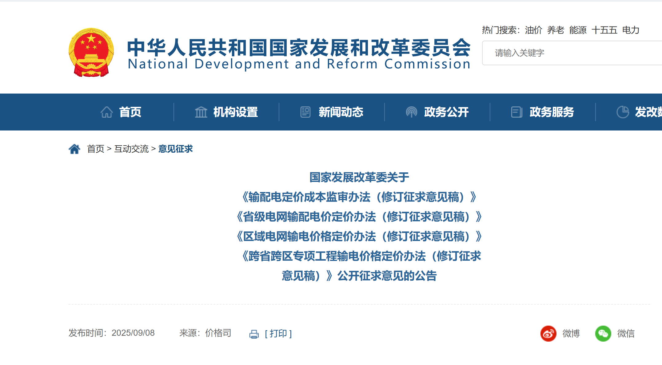查看详情9月8日,国家发改委发布新一轮输配电价征求意见稿。其中《输配电定价成本监审办法(修订征求意见稿)》明确:抽水蓄能电站、新型储能电...